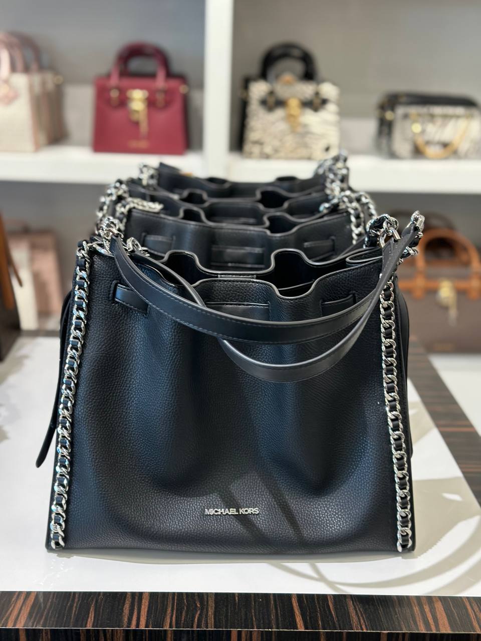 Michael Kors Mina Large Chain Shoulder Bag Silver Black