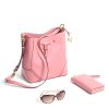 Gold hardware and pink leather accents