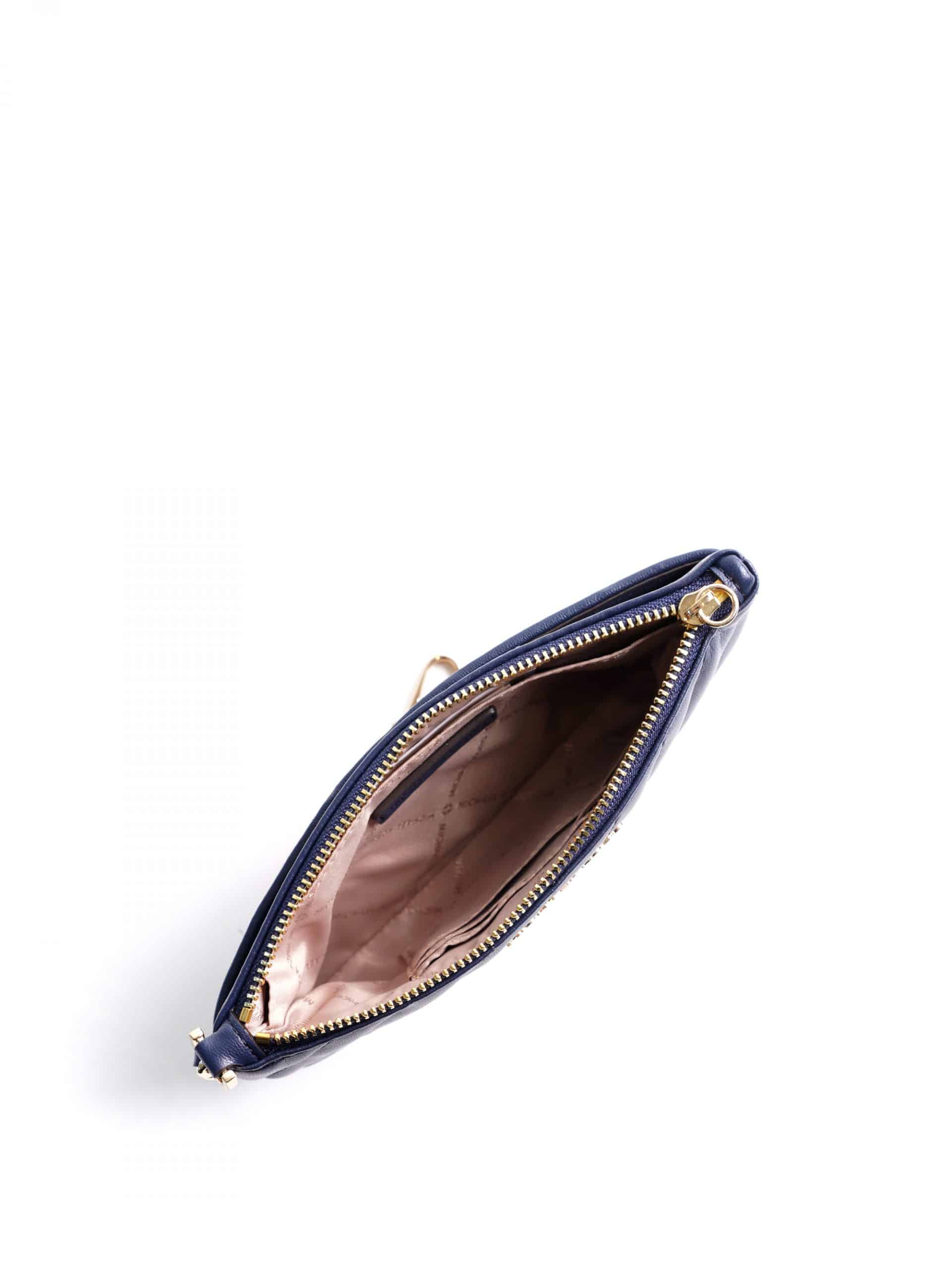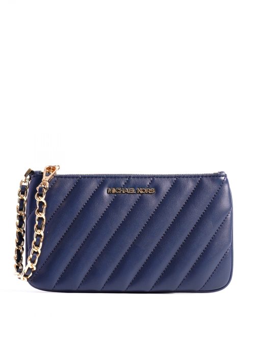 Michael Kors Rose Medium Quilted Top Zip Chain Wristlet Navy