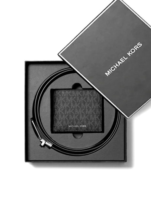 Michael Kors Signature Logo Wallet and Reversible Belt Gift Set