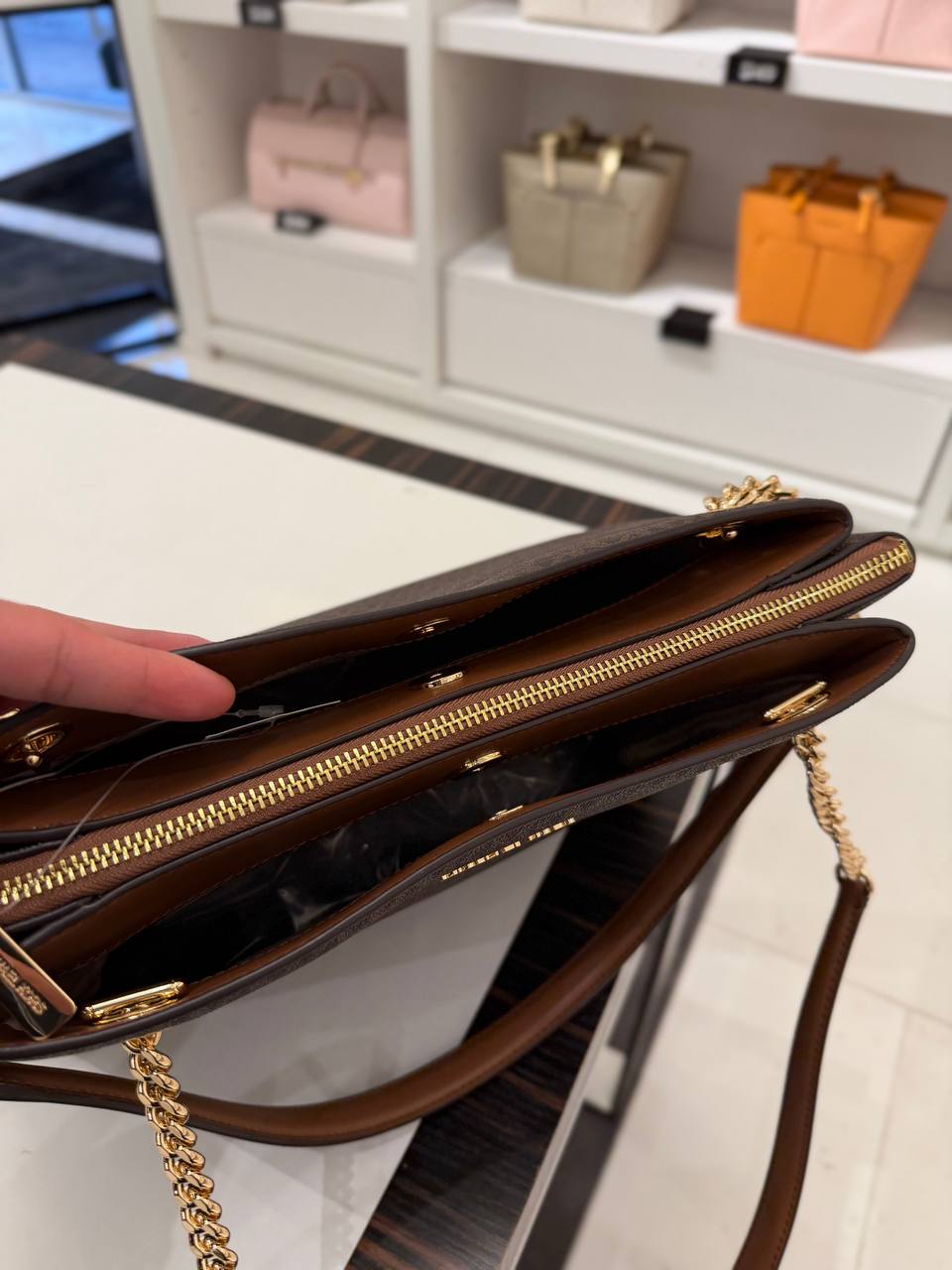 • Gold-tone hardware