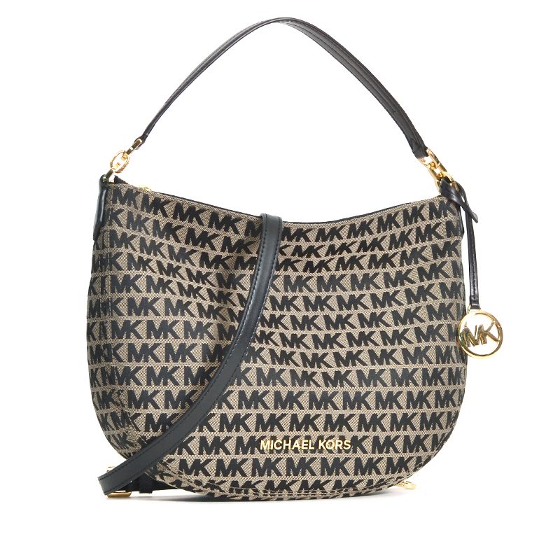 Michael Kors Bedford Medium Convertible Crescent Signature Beige Black