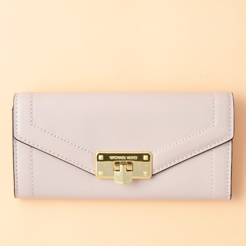 Flap closure. Polished MK logo lettering.