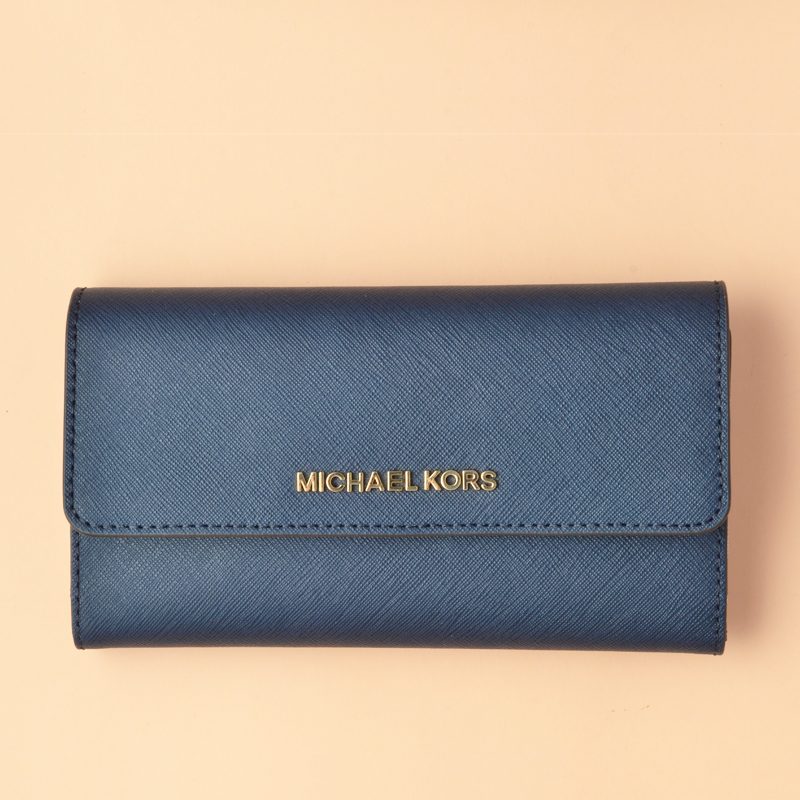 Michael Kors Jet Set Travel Trifold Flap Wallet Navy White Flower
