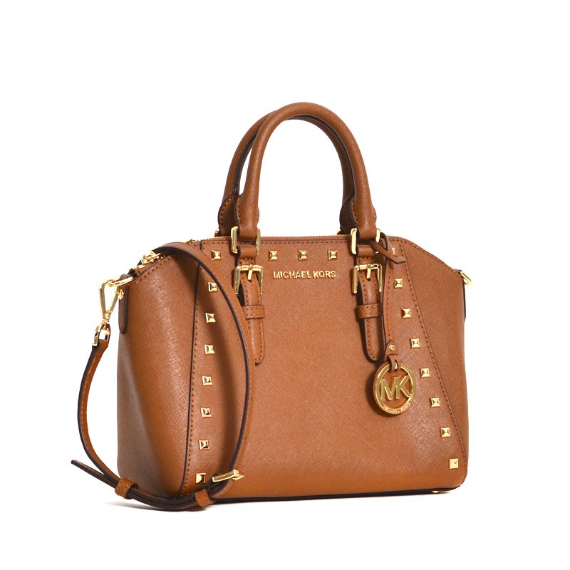Michael Kors Ciara Studded Medium Messenger Saffiano Leather Satchel in Luggage