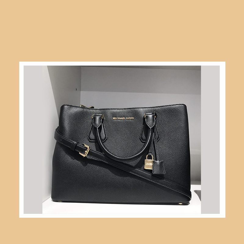 16.5″W x 6″D x 11″H; 5″ handle drop, 18″ to 20″ strap drop