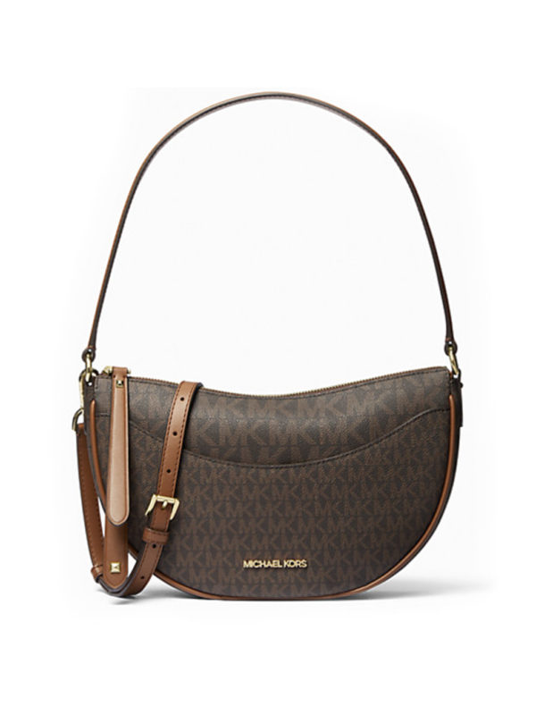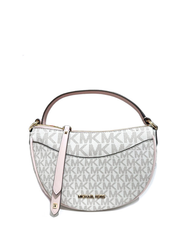 Michael Kors Dover Small Half Moon Crossbody Signature Vanilla Powder Blush