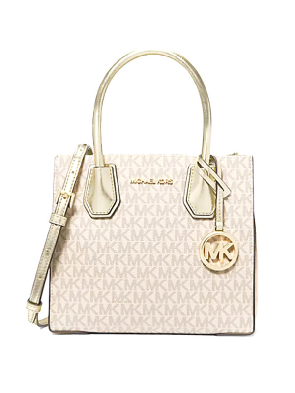 Michael Kors Mercer Medium Messenger Signature Vanilla Gold