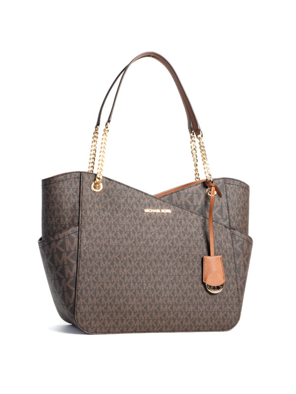 Michael Kors Jet Set Travel Large Chain Shoulder Tote Signature Brown