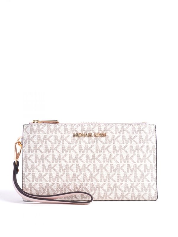 Michael Kors Jet Set Travel Large Double Zip Wristlet Signature Powder Blush Multi