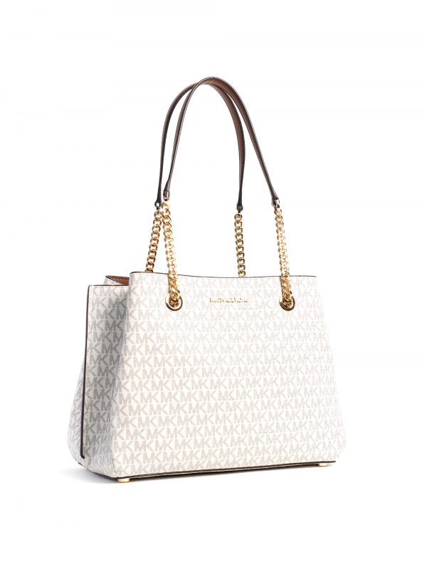 Michael Kors Teagen Large Long Drop Satchel Signature Vanilla