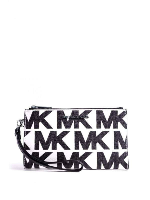 Michael Kors Jet Set Travel Large Double Zip Wristlet MK Logo Optic White