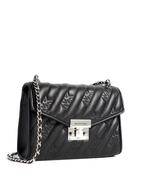Michael Kors Rose Medium Flap Shoulder Quilted Logo MK Black