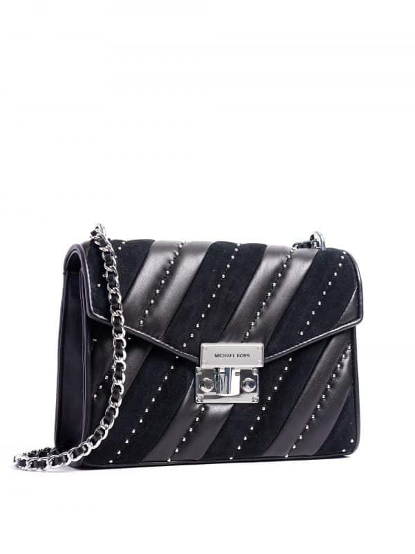 Michael Kors Rose Medium Flap Shoulder Quilted Suede Black