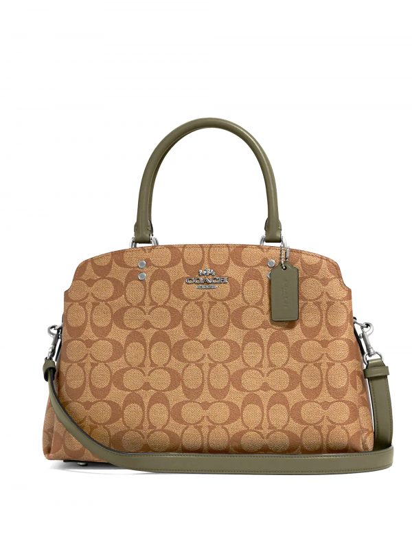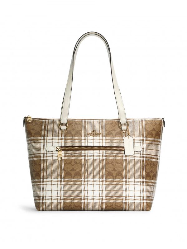 Coach Gallery Tote Hunting Fishing Plaid Print Signature Khaki Chalk Multi