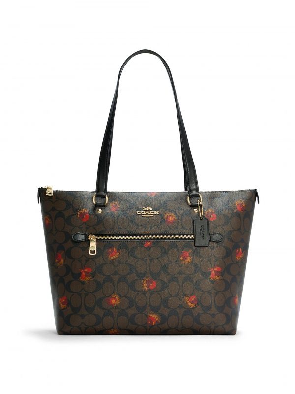Coach Gallery Tote Pop Floral Print Signature Brown Black