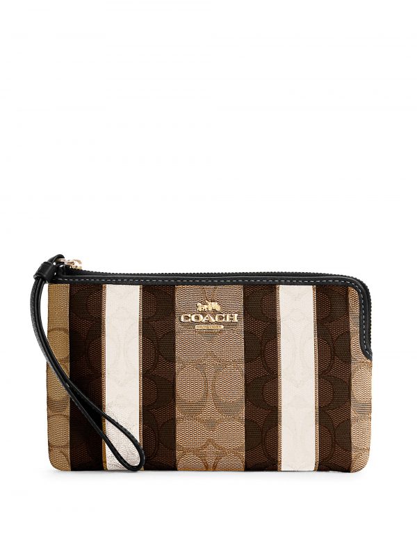 Coach Large Corner Zip Wristlet Jacquard Stripes Signature Khaki Black Multi