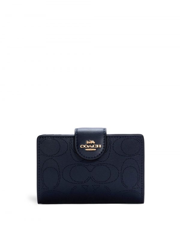 Coach Medium Corner Zip Wallet Perforated Signature Midnight