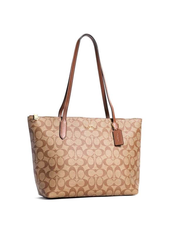 Coach Zip Top Tote 4455 Signature Khaki Saddle 2