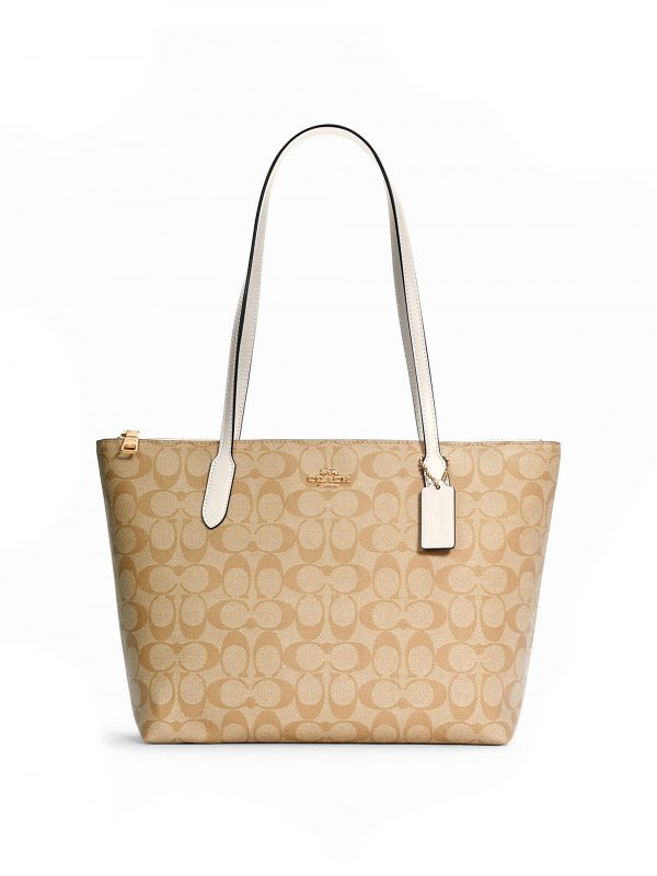 Coach Zip Top Tote 4455 Signature Light Khaki Chalk