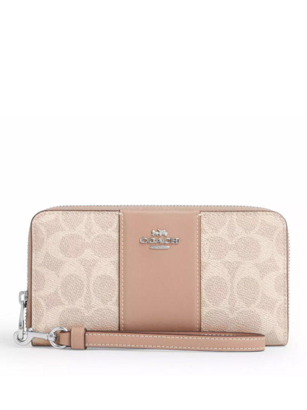 Coach Long Zip Around Wallet Signature Stripe Sand Taupe