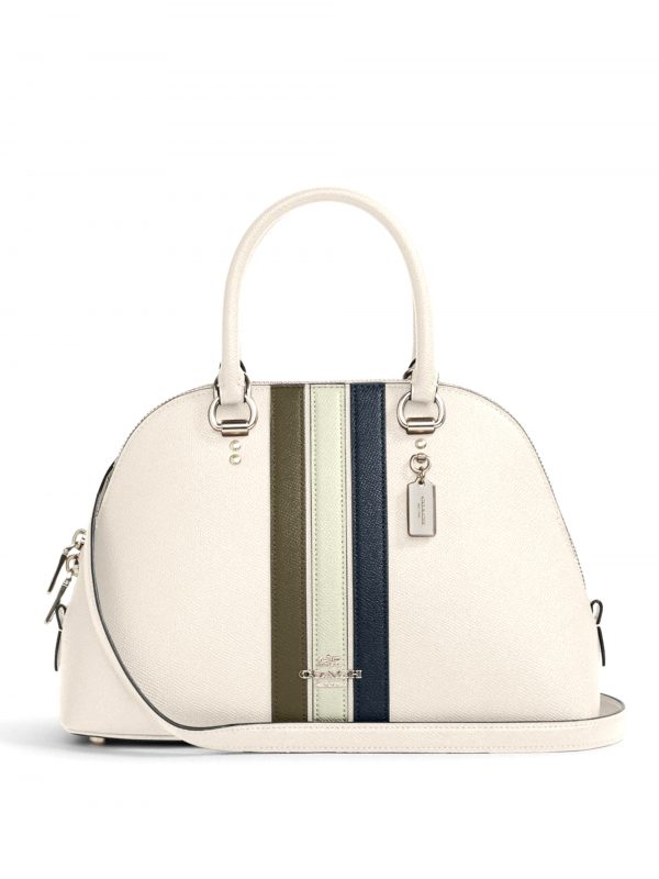 Coach Katy Satchel Varsity Stripe Chalk Pale Green Multi