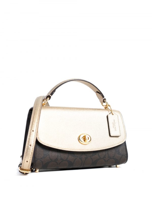Coach Tilly Satchel 23 Sig Brown Metallic Pale Gold