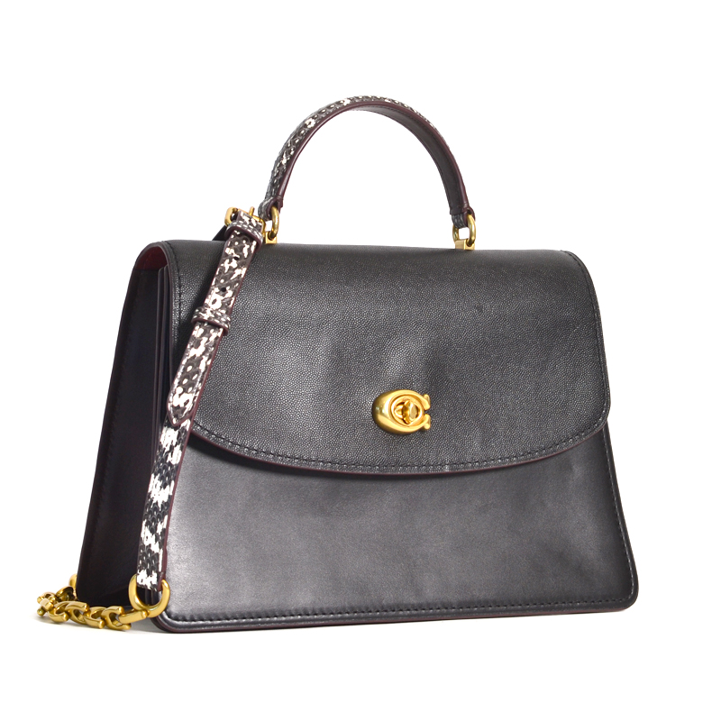 [AS-IS] Coach Parker Top Handle 32 Colorblock Snakeskin Black