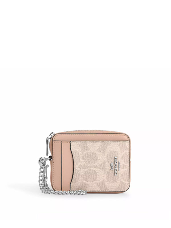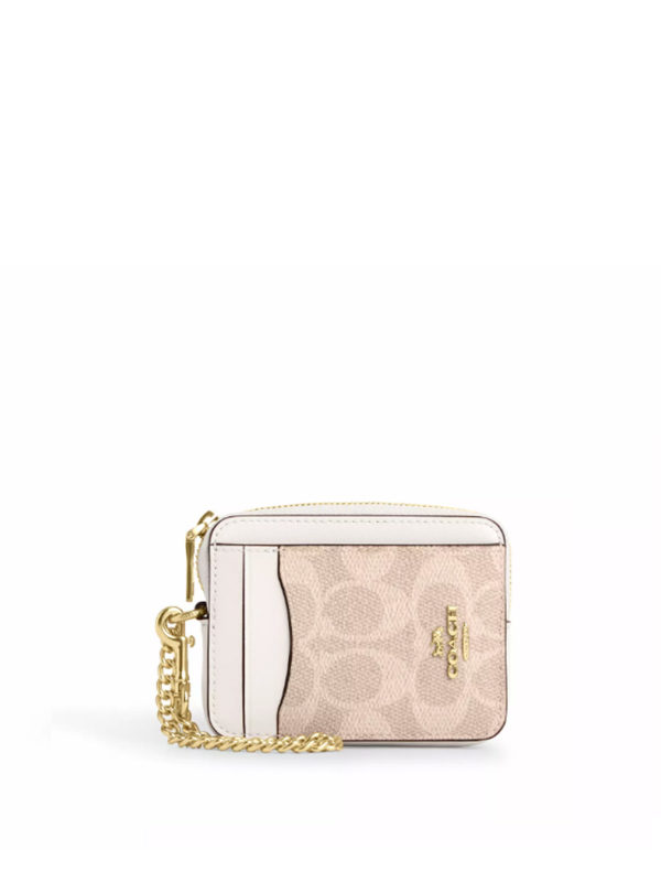 Coach Zip Card Case Signature Gold Sand Chalk