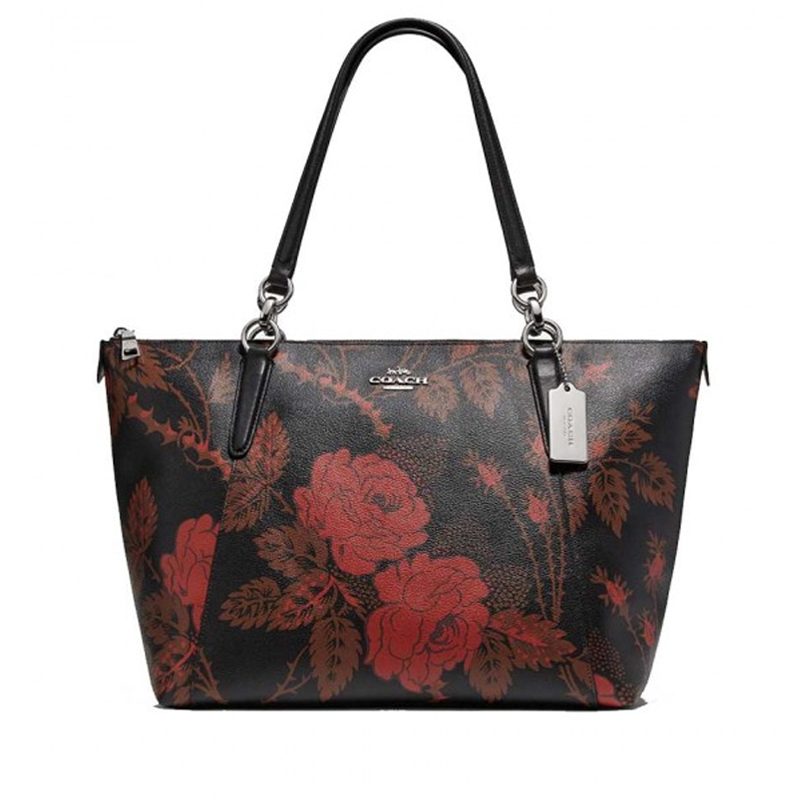 Coach Ava Tote Thorn Roses Print Black Red Multi