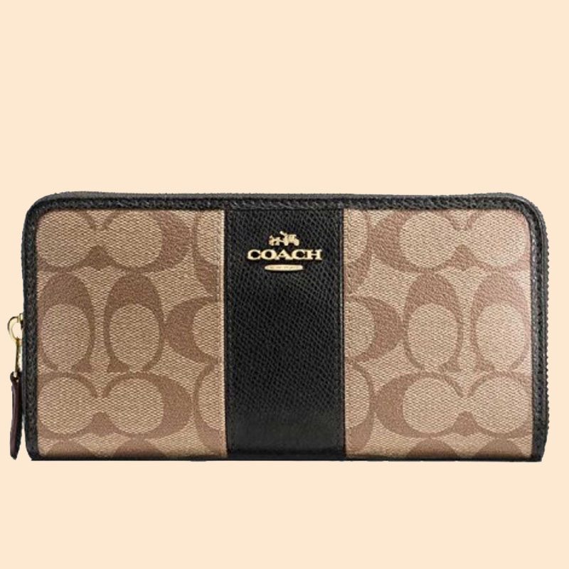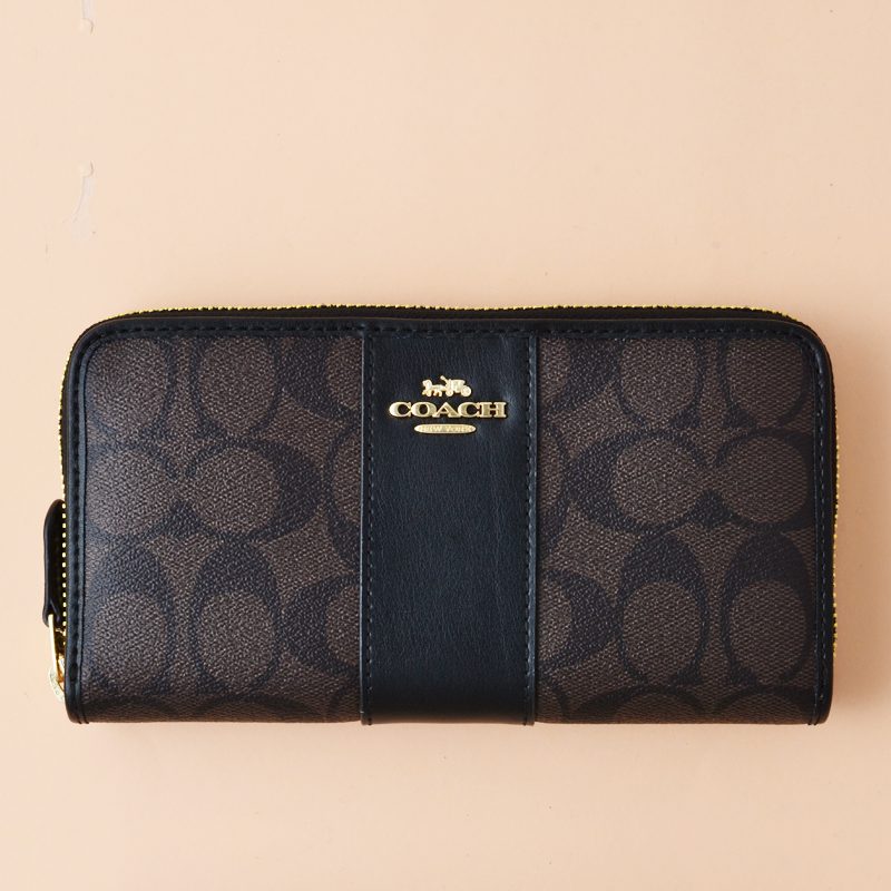Coach Accordion Zip Signature Brown Black