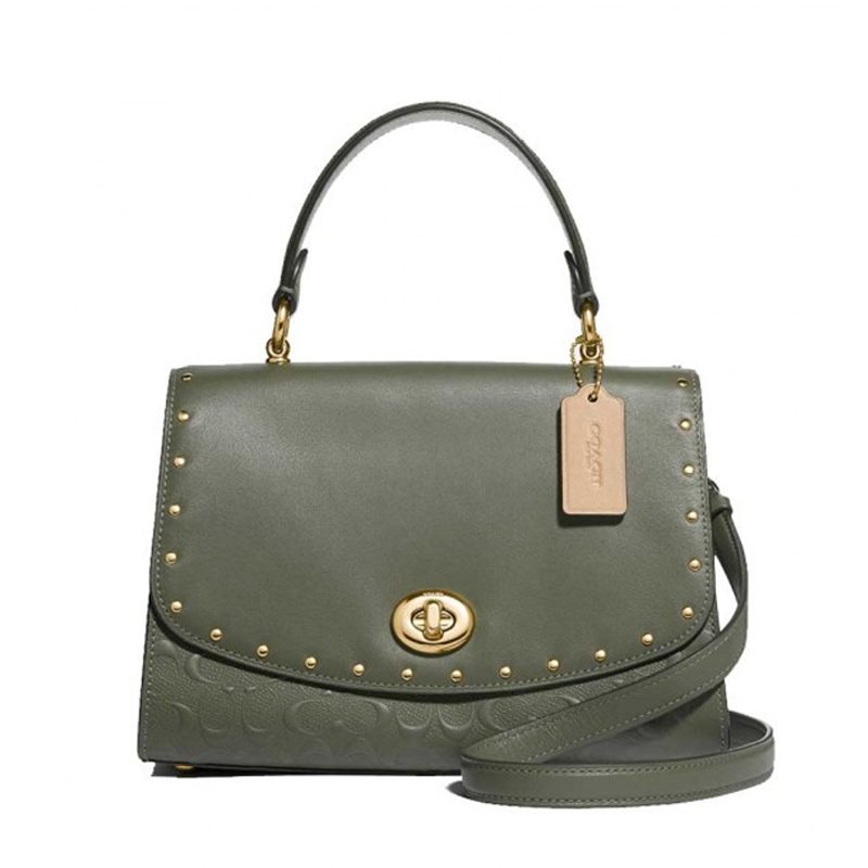 Coach Tilly Top Handle Satchel Rivets Signature Military Green