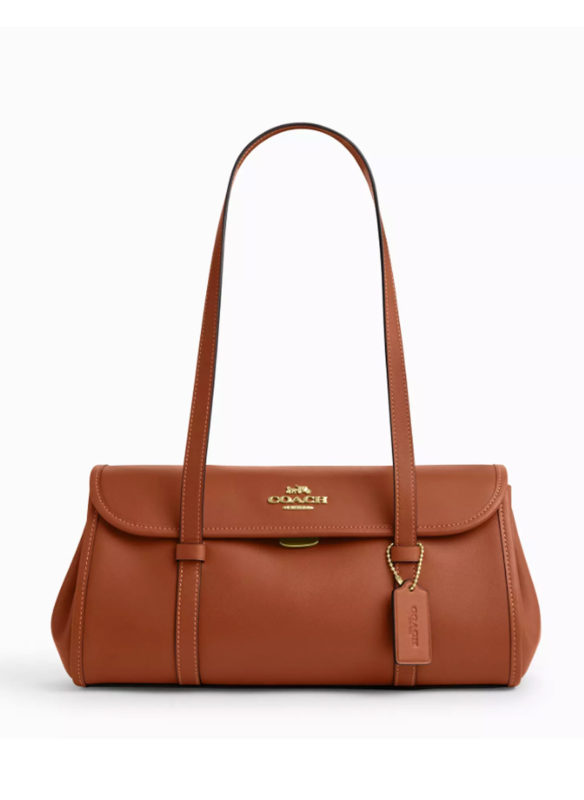 Coach Bridget Flap Shoulder Bag Leather Gold Tan