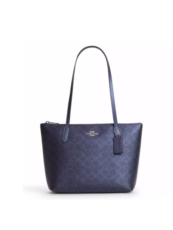 Coach Fiona Tote Signature Metallic Blue Navy