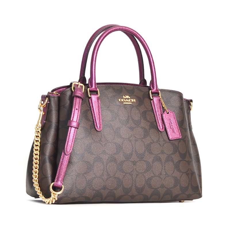 Coach Rowan Satchel Signature Brown Metallic Berry
