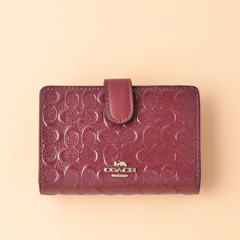 Coach Medium Corner Zip Wallet Signature Patent Leather Cherry