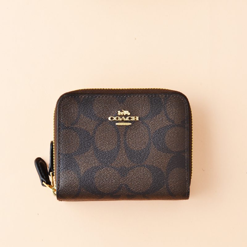 Coach Small Double Zip Around Wallet Signature Brown Black