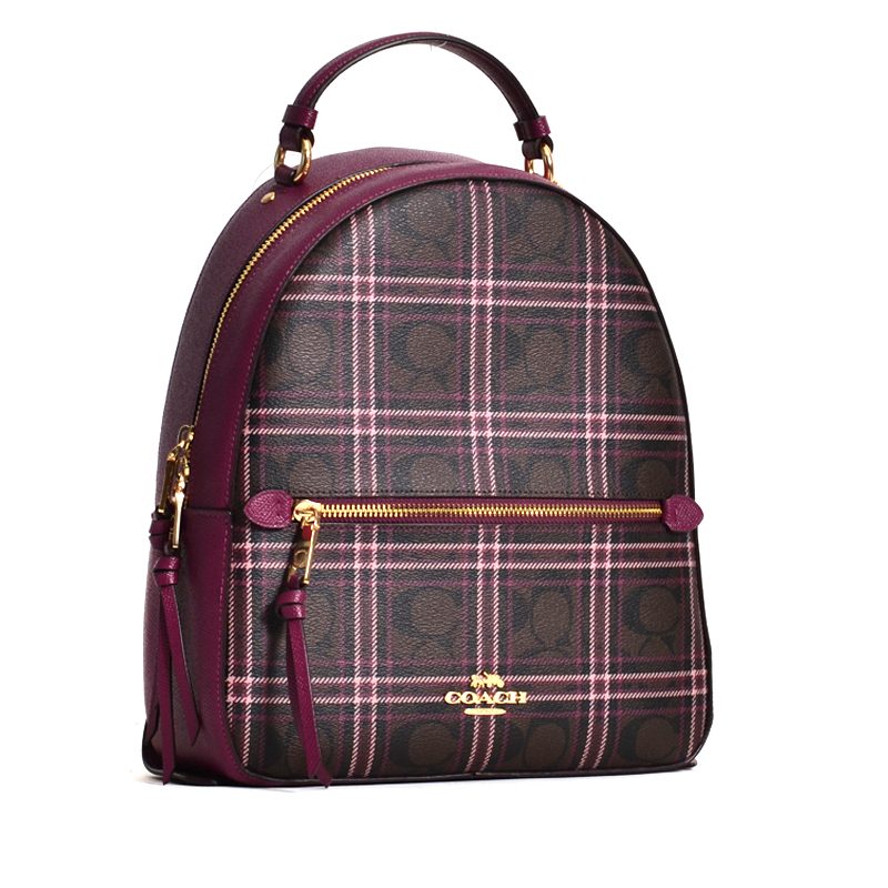 Coach Jordyn Backpack Shirting Plaid Print Signature Brown Fuschia Multi