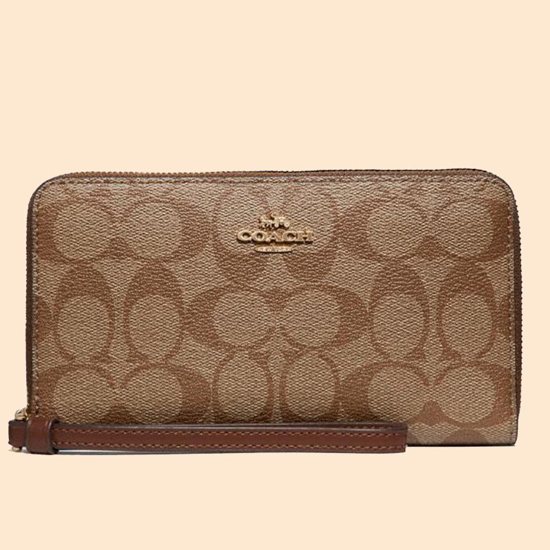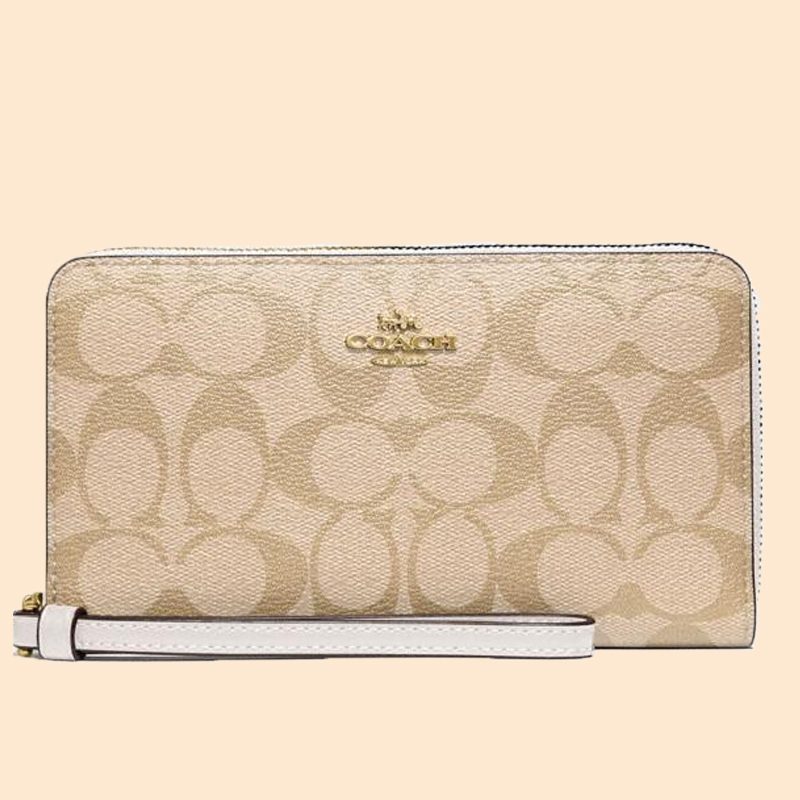 Coach Large Phone Wallet Signature Light Khaki Chalk