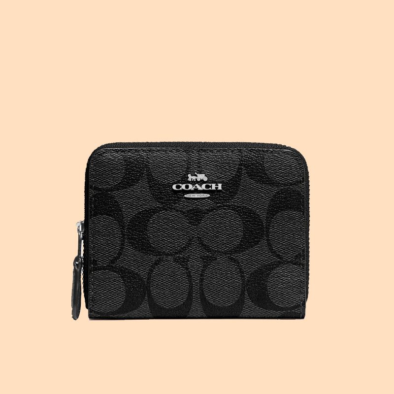 Coach Small Double Zip Around Wallet Signature Black Smoke