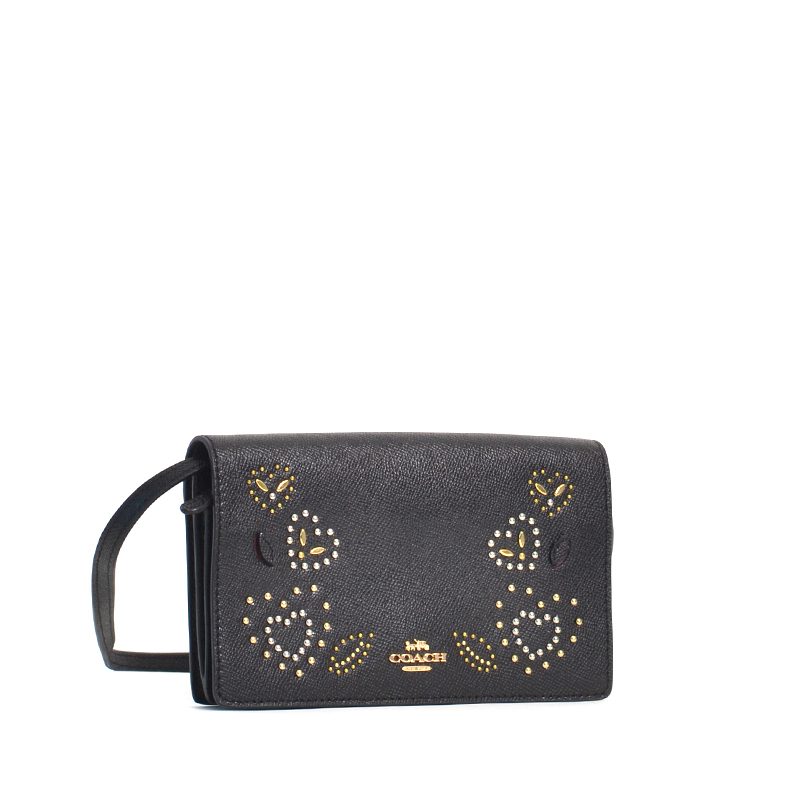 Coach Hayden Foldover Crossbody Clutch Heart Bandana Rivets Black