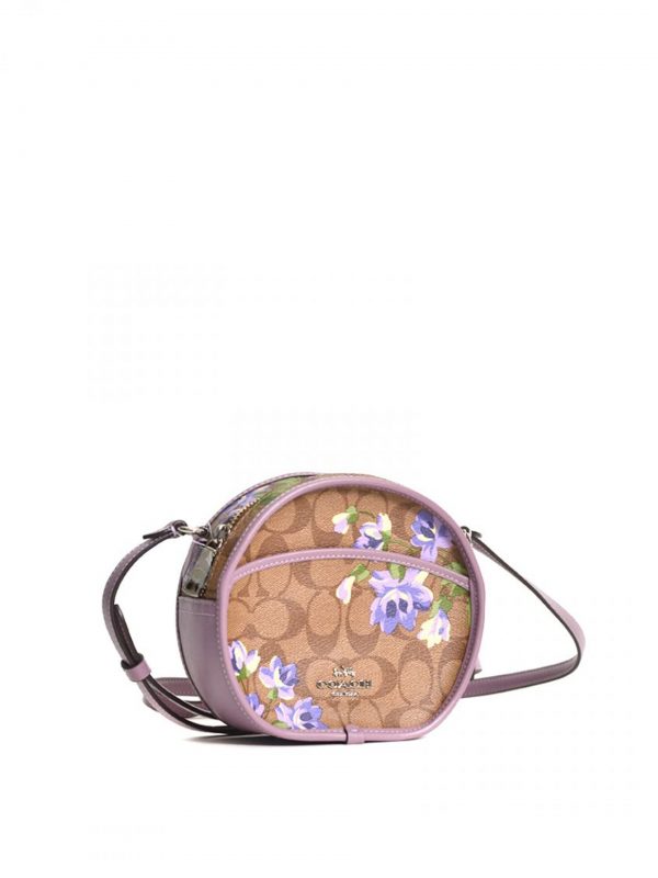 Coach Canteen Crossbody Lily Print Signature Khaki Purple Multi