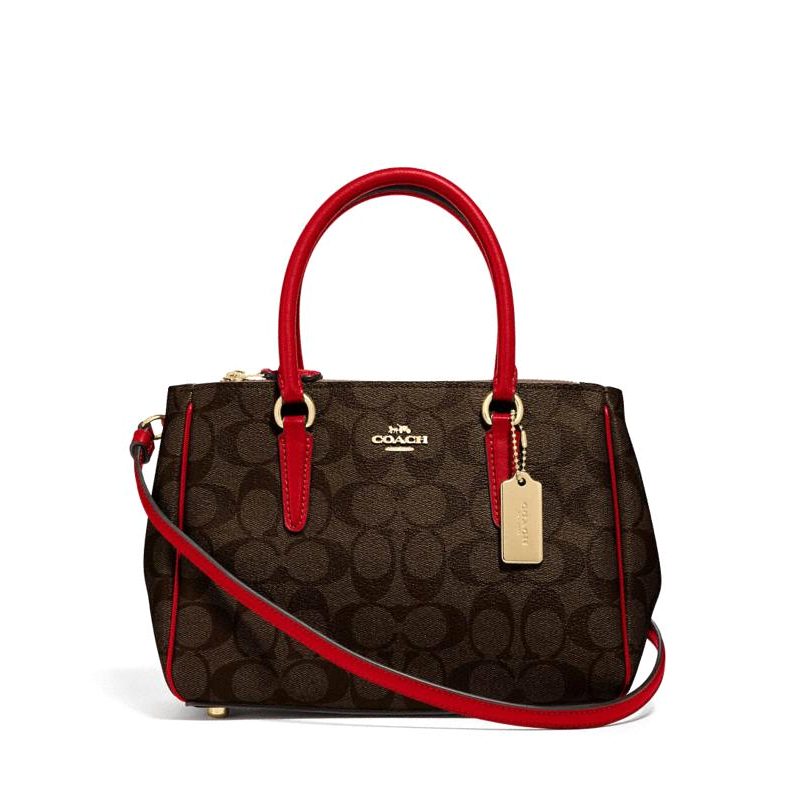 Coach Mini Surrey Carryall Signature Brown True Red