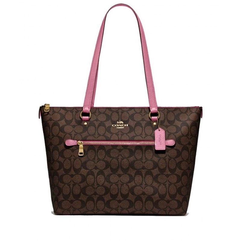 Coach Gallery Tote Signature Brown Pink Rose
