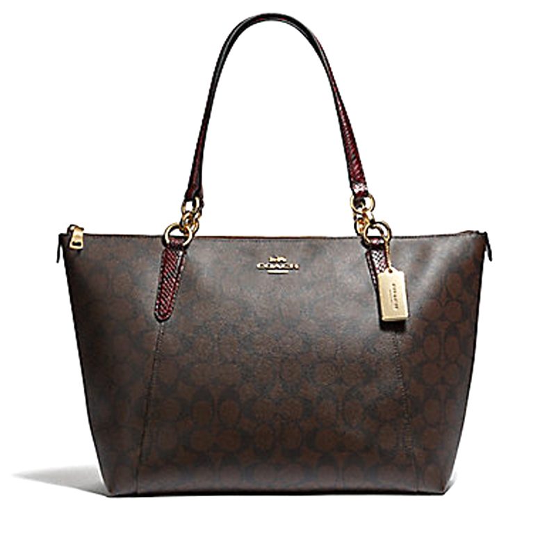 Coach Ava Chain Tote Exotic Signature Brown Black