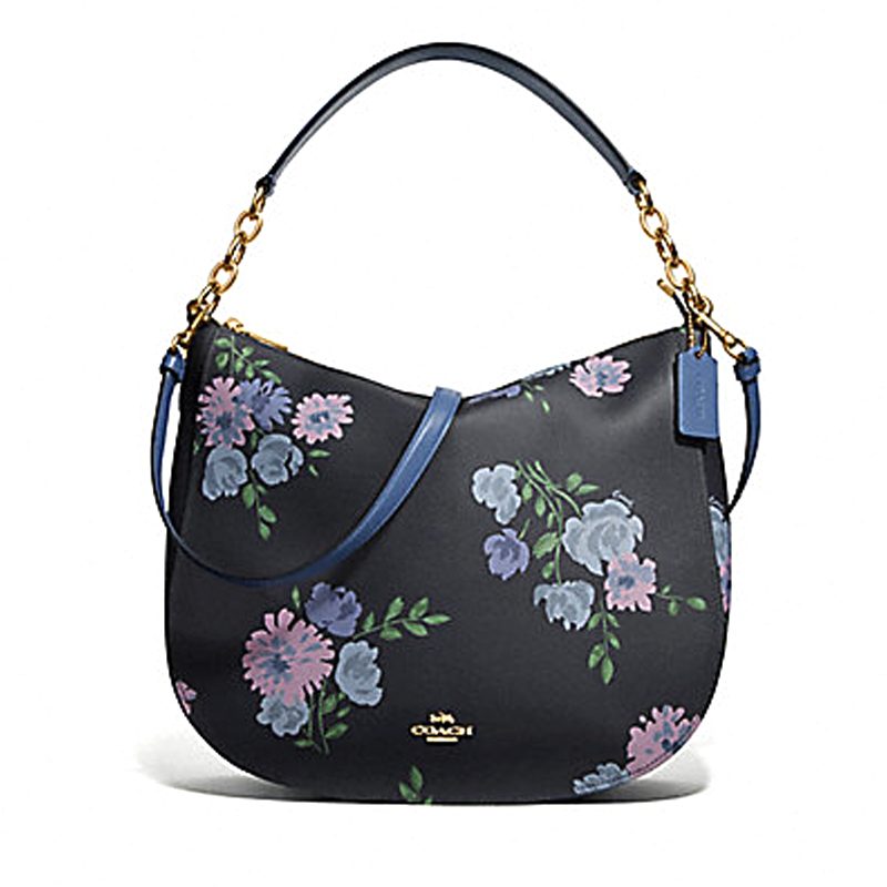 Coach Elle Hobo Painted Peony Print Navy Multi