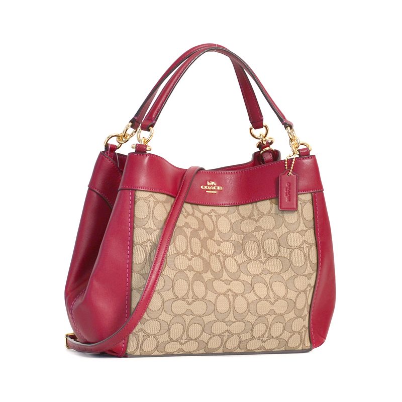 Coach Small Lexy Signature Khaki Cherry