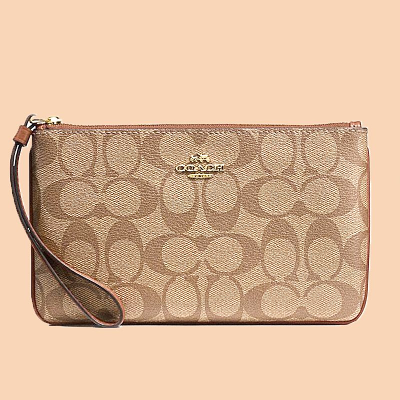 Coach Large Wristlet Signature Canvas Khaki Saddle