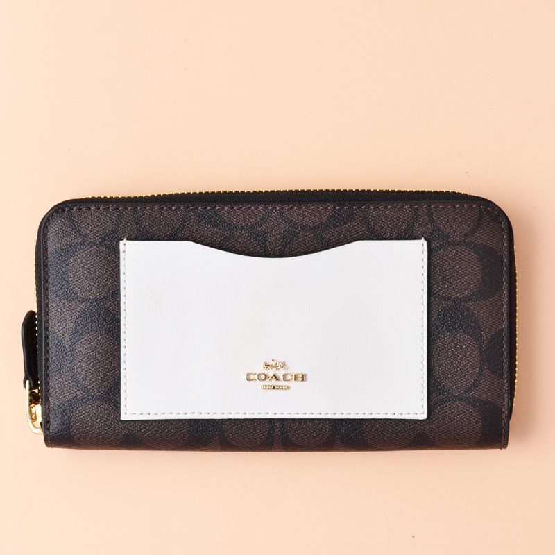 Coach Accordion Zip Colorblock Brown Neutral Multi
