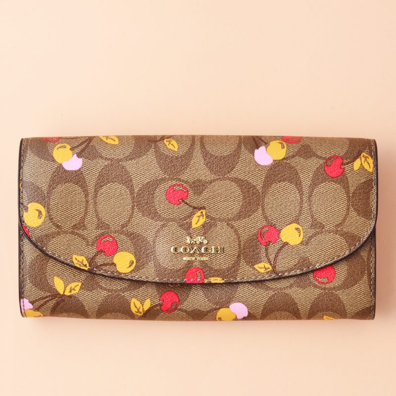 Coach Slim Envelope Signature Cherry Khaki Multi